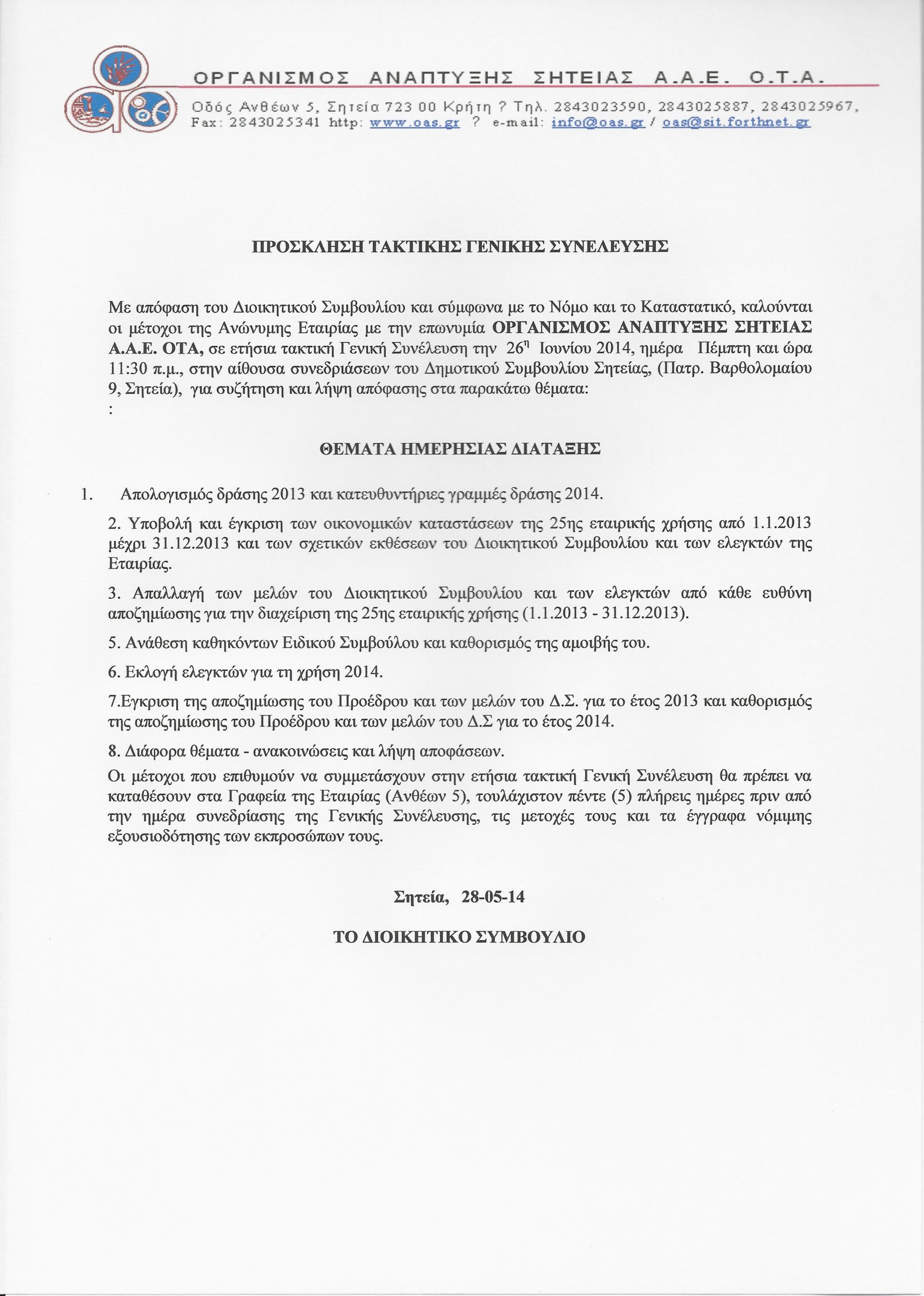 ΟΙΚΟΝΟΜΙΚΕΣ ΚΑΤΑΣΤΑΣΕΙΣ ΤΗΣ 25ης ΕΤΑΙΡΙΚΗΣ ΧΡΗΣΗΣ ΚΑΙ ΠΡΟΣΚΛΗΣΗ ΣΤΗΝ ΓΕΝΙΚΗ ΣΥΝΕΛΕΥΣΗ από OAS 28 Μαΐου, 2014 28 Μαΐου, 2014 274 επόμενη ανάρτηση ΟΙΚΟΝΟΜΙΚΕΣ ΚΑΤΑΣΤΑΣΕΙΣ ΤΗΣ 26ης ΕΤΑΙΡΙΚΗΣ ΧΡΗΣΗΣ ΚΑΙ ΠΡΟΣΚΛΗΣΗ ΣΤΗΝ ΓΕΝΙΚΗ ΣΥΝΕΛΕΥΣΗ